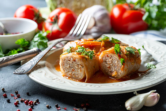 Eine Auswahl an "klassischer Hausmanskost" wie z.B. Rinderrouladen gegart, handgebratene Frikadellen, Königsberger Klopse oder verschiedene Kohlsorten.